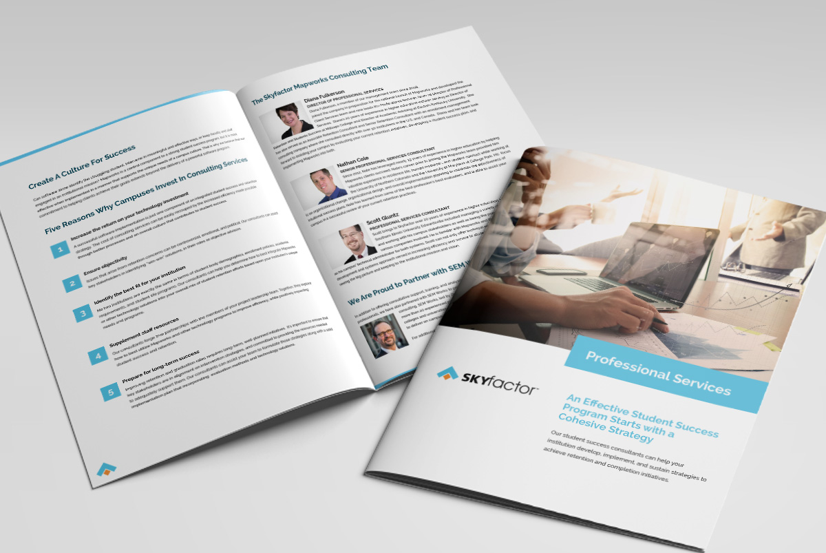 Since 1994, Skyfactor (formerly EBI MAP-Works) has been dedicated to improving retention, student success, and the quality of the college student experience. I led the rebranding effort from concept through completion and generated/oversaw marketing materials.